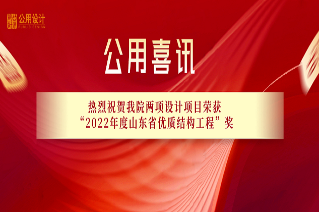 • 公用喜訊|公用設(shè)計(jì)兩項(xiàng)設(shè)計(jì)項(xiàng)目榮獲“2022年度山東省優(yōu)質(zhì)結(jié)構(gòu)工程”獎(jiǎng)