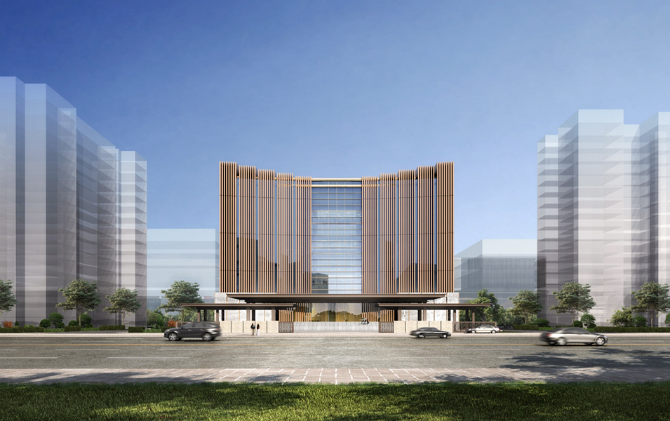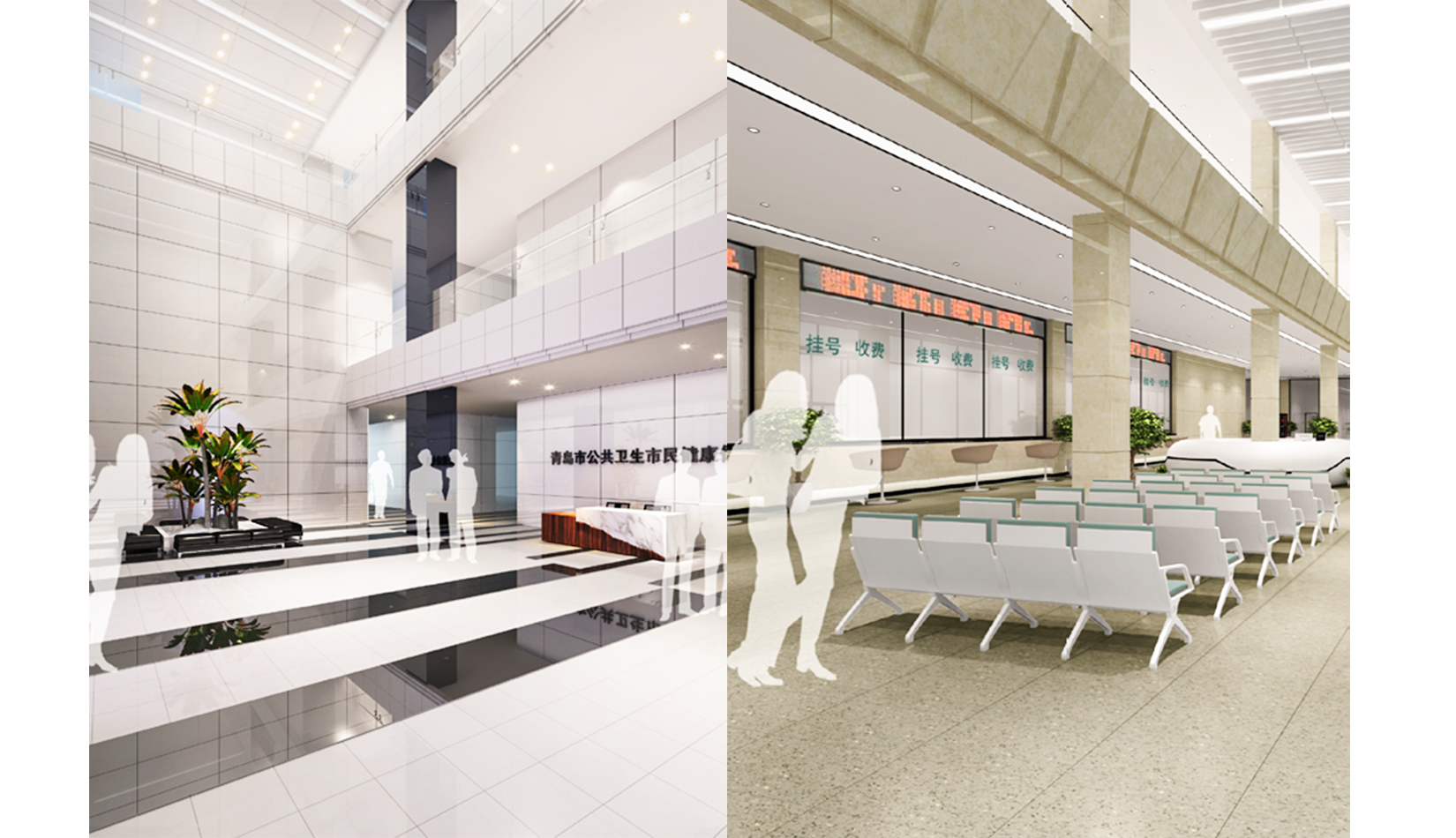 結(jié)合周邊的環(huán)境和節(jié)省造價(jià)的因素綜合考慮,建筑立面為干凈簡潔的現(xiàn)代風(fēng)格,臨床中心以橫向線條為主,公共衛(wèi)生中心以豎線條為主,市民健康體驗(yàn)中心強(qiáng)調(diào)建筑的標(biāo)志性;建筑平面主要解決不同功能的區(qū)域劃分和避免流線交叉的問題。