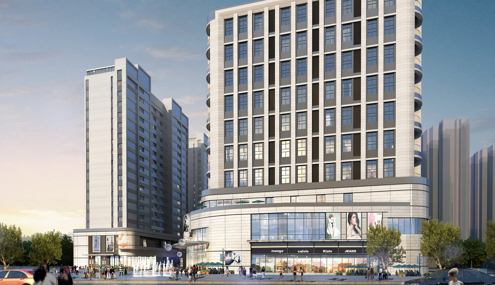 立面打造可識別性的“社區(qū)”建筑語匯,在周邊版塊中做到脫穎而出。建筑風(fēng)格莊重精美,通過運用傳統(tǒng)美學(xué)法則來使現(xiàn)代的材料與結(jié)構(gòu)產(chǎn)生規(guī)整、端莊、典雅的安定感。商業(yè)立面通過將具有力量感的矩形石材墻面和玻璃幕墻進行體塊穿插與虛實結(jié)合。勾勒出與住宅風(fēng)格一致的現(xiàn)代,簡約,富有商業(yè)氣息的造型。同時,創(chuàng)造出豐富的露臺空間與立面層次,完美的樹立了本項目的沿街形象。