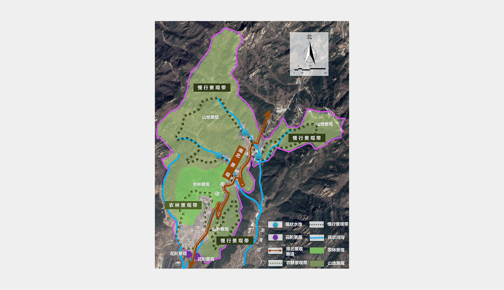 項目規(guī)劃目標(biāo):在國土空間規(guī)劃、生態(tài)修復(fù)城市修補(bǔ)背景下,重新定義村莊發(fā)展格局;依托嶗山風(fēng)景區(qū)旅游品牌、聲譽、影響力,培育村莊獨特的旅游景點、活動項目,吸引外圍景區(qū)游覽客群;在旅游游線、服務(wù)設(shè)施、活動項目等方面,充分與嶗山主景區(qū)互動,打造分工明確、各有側(cè)重、各俱特色的旅游服務(wù)村落集群。