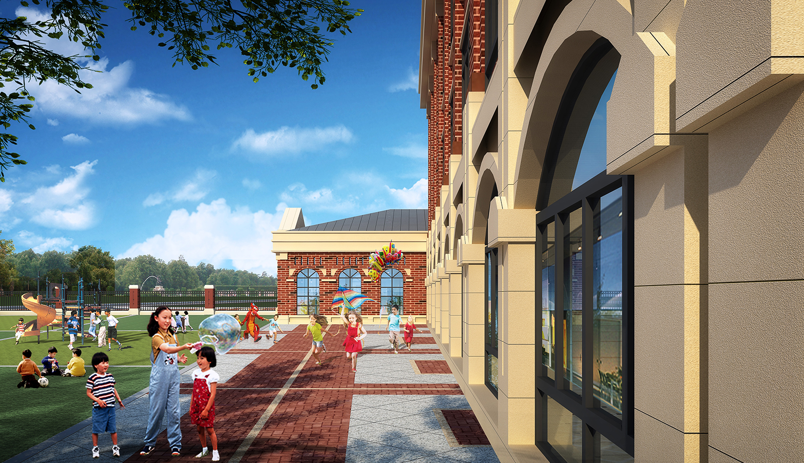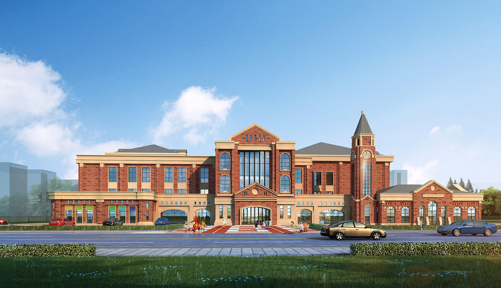 項(xiàng)目在設(shè)計(jì)中從幼兒特點(diǎn)考慮,通過活動(dòng)空間、明快色彩以及建筑造型的展示,意在創(chuàng)造符合幼兒心理的童話世界。