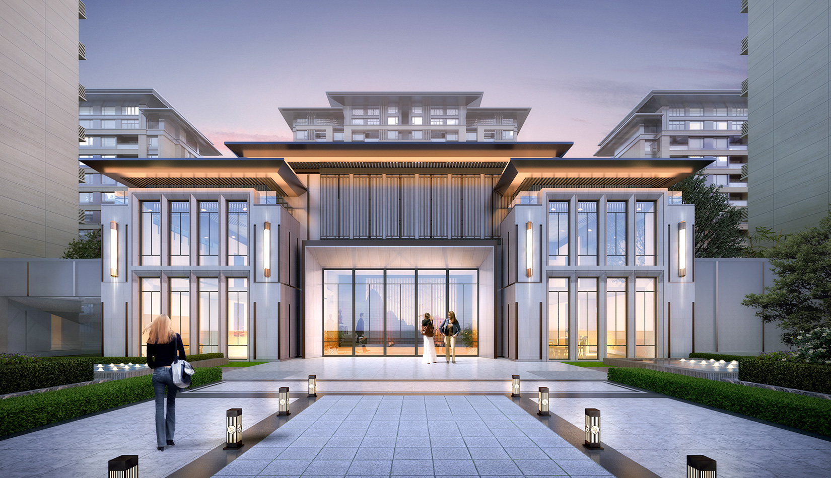 頂部處理上結(jié)合現(xiàn)代化設(shè)計元素和表現(xiàn)手法,豐富建筑體量,力求簡練現(xiàn)代、色彩時尚,使之充滿活力和昭示性效果